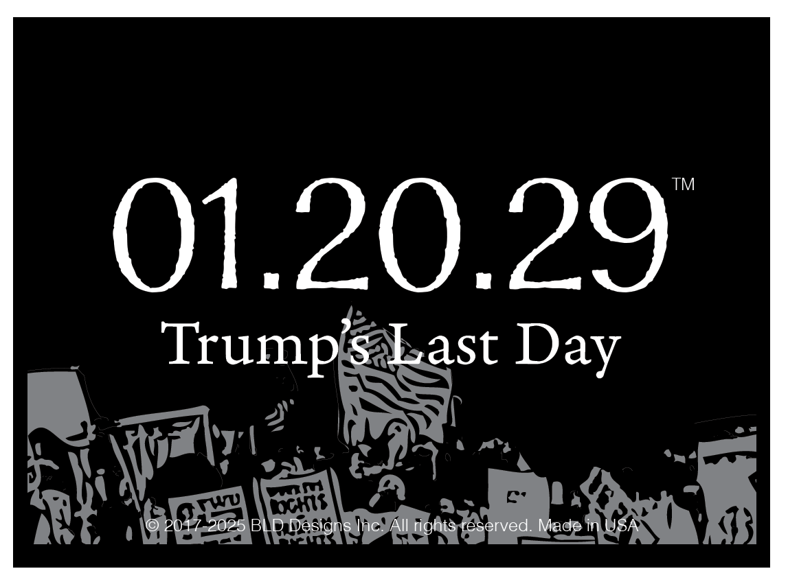 We look forward to a significant moment in American history with our “01.20.29™ ” Trump’s Last Day Fridge Magnet. This Fridge Magnet serves as a symbol marking the anticipated conclusion of Donald Trump’s second term. Whether you’re a political activist, a collector of memorabilia, or someone who is just plain fed up, this Fridge Magnet stands as a testament to democratic transitions and the ever-evolving political landscape. Union-made in the USA, 2.5”x3.5” high-quality removable Fridge Magnet. Stick one on your fridge, locker, microwave, and more.